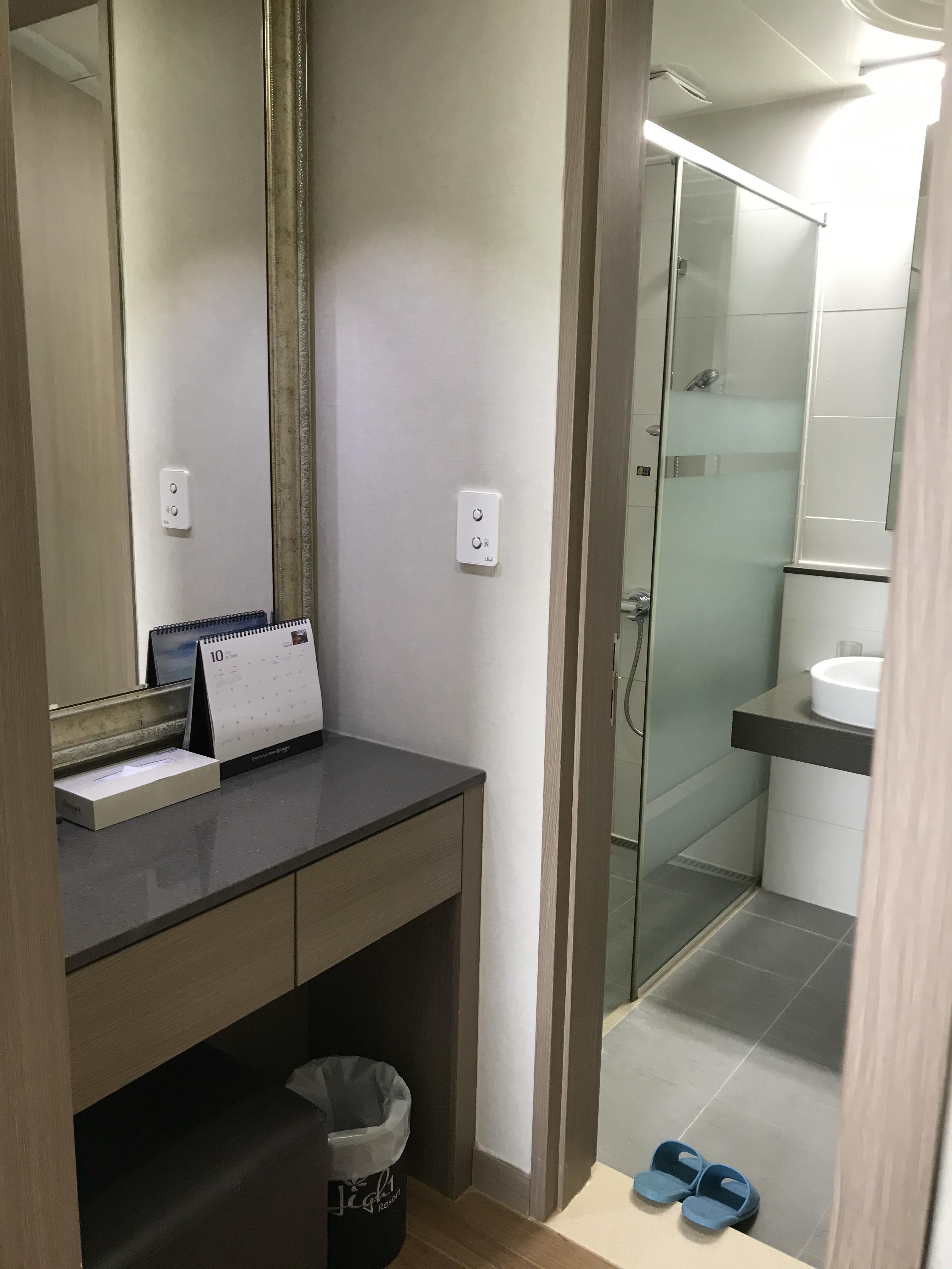 욕실도 중간에 화장대와 옷장이 있는 공간이 있고,