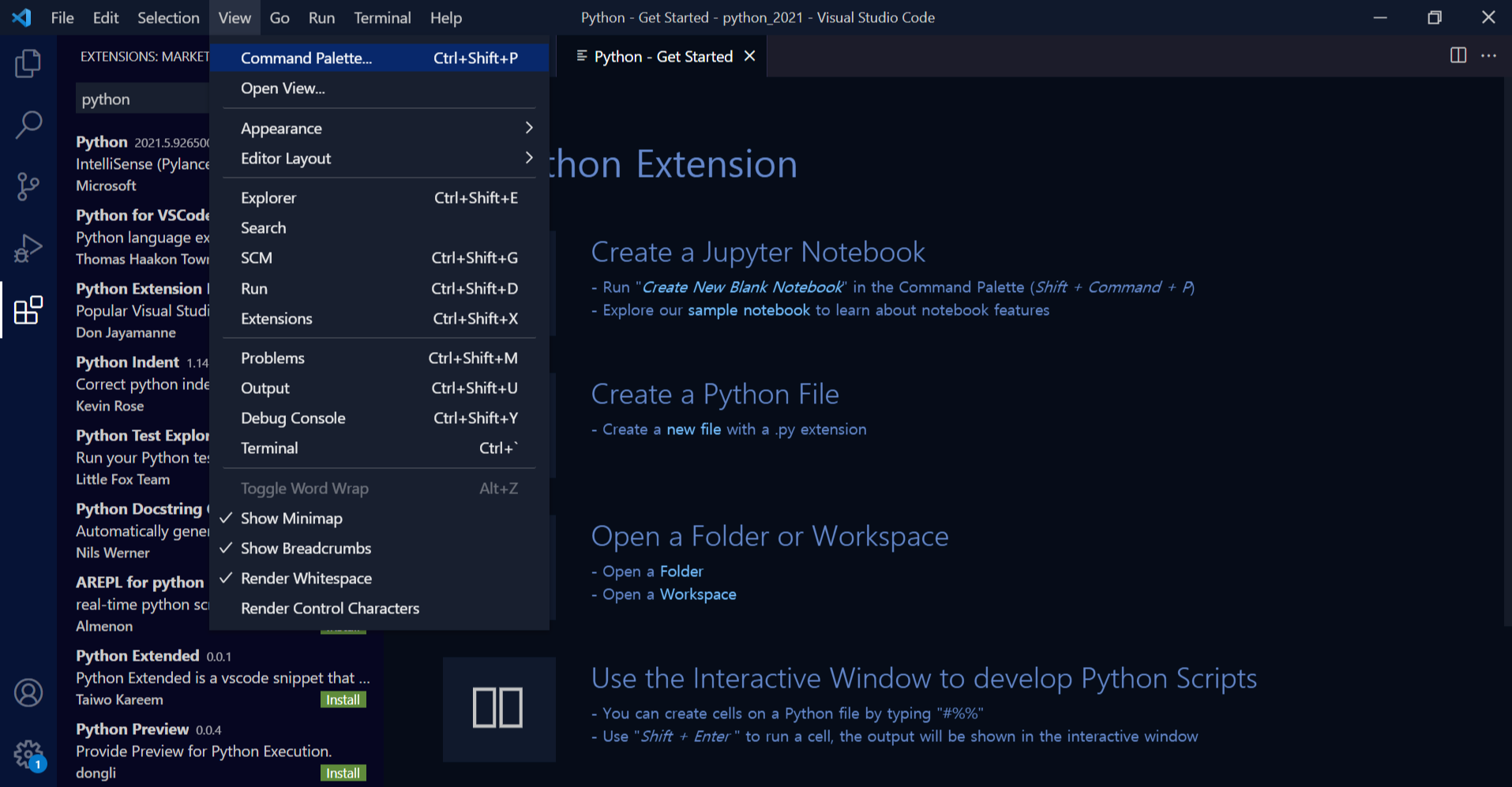 상단메뉴에서 View- Command Palette...
