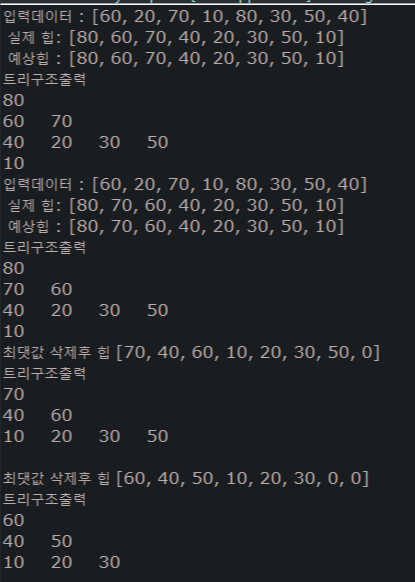System.out.printf("최댓값 삭제후 힙 %s \r\n", h2);